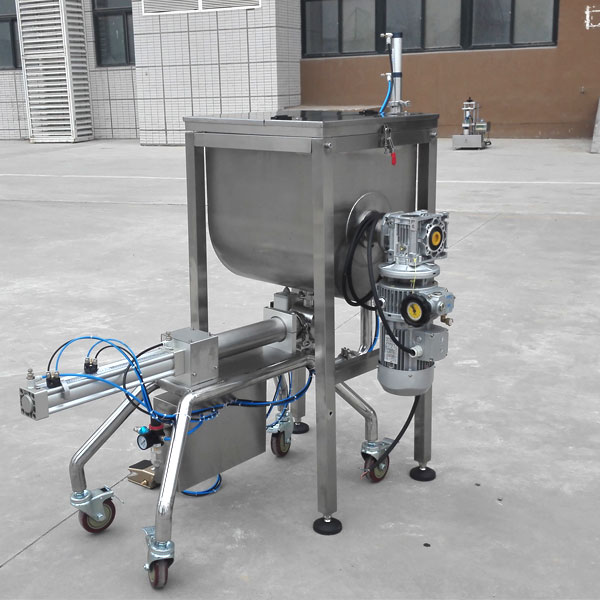 星火機(jī)械設(shè)計研發(fā)的半自動醬料灌裝機(jī)是一款廣泛適用于食品、化工、醫(yī)藥等行業(yè),特別實用于調(diào)味品種帶顆粒并且濃度較大的辣椒醬、豆瓣醬、花生醬、芝麻醬、果醬、牛油火鍋底料,紅油火鍋底料等粘稠醬類的灌裝的小型醬料灌裝設(shè)備。設(shè)備機(jī)型設(shè)計合理,機(jī)型小巧,操作方便,物料接觸部分均采用304不銹鋼材料制成,灌裝量調(diào)節(jié)手柄、灌裝速度可任意調(diào)節(jié),灌裝精度高。灌裝悶頭采用防滴漏、防拉絲及升降灌裝裝置。料斗帶有可調(diào)速攪拌裝置,使物料更均勻灌裝。臥式攪拌結(jié)構(gòu),保證了醬和油的充分混合,大大提高灌裝性能和計量的精度、